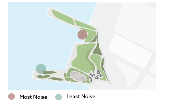 The site of the installation could be anywhere from land to water within Pier 62. After thorougly examining the area, I found that the marked area was the furthest from the city noises and had an entry gate available.