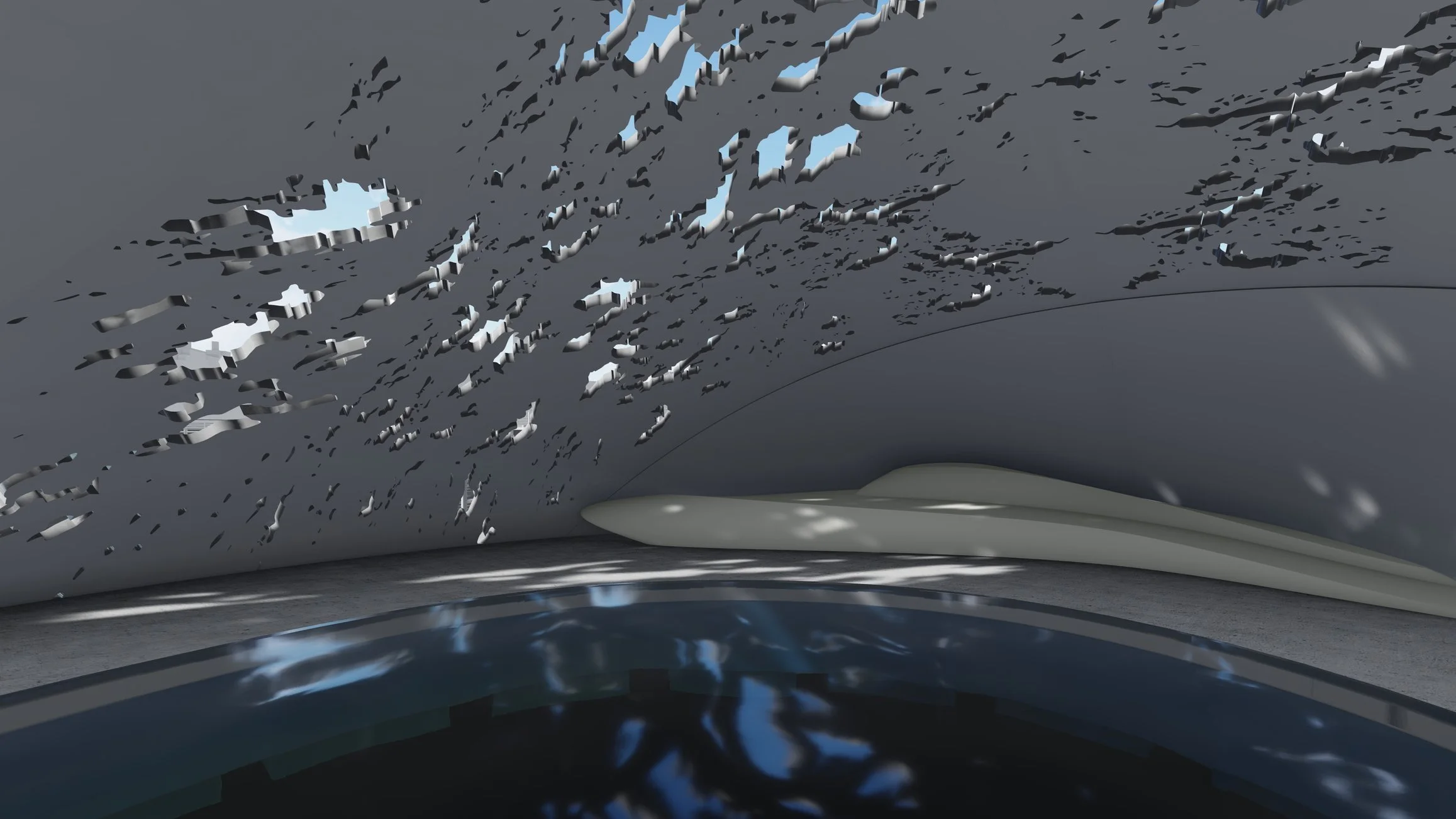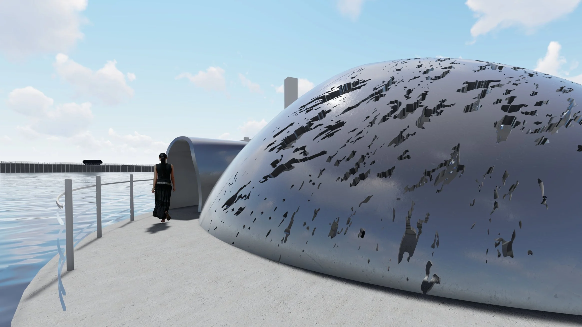 Picabo is a floating installation that aims to provide an immersive reflectory experience through the use of sunlight reflections on the waters surface.